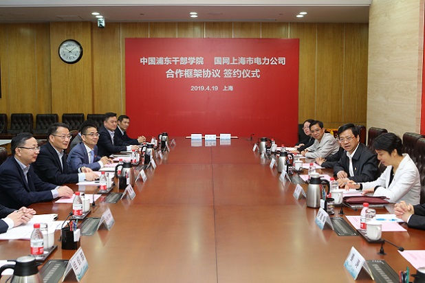 4月19日上午,学院分管日常工作的副院长、机关党委书记曹文泽率队赴国家电网上海市电力公司调研,出席学院与国网上海市电力公司合作框架协议签署仪式。国网上海市电力公司党委书记、董事长钱朝阳热情欢迎学院人员一行。学院院务委员、办公厅主任宋今,国网上海电力总经理、党委副书记阮前途等出席签约仪式。