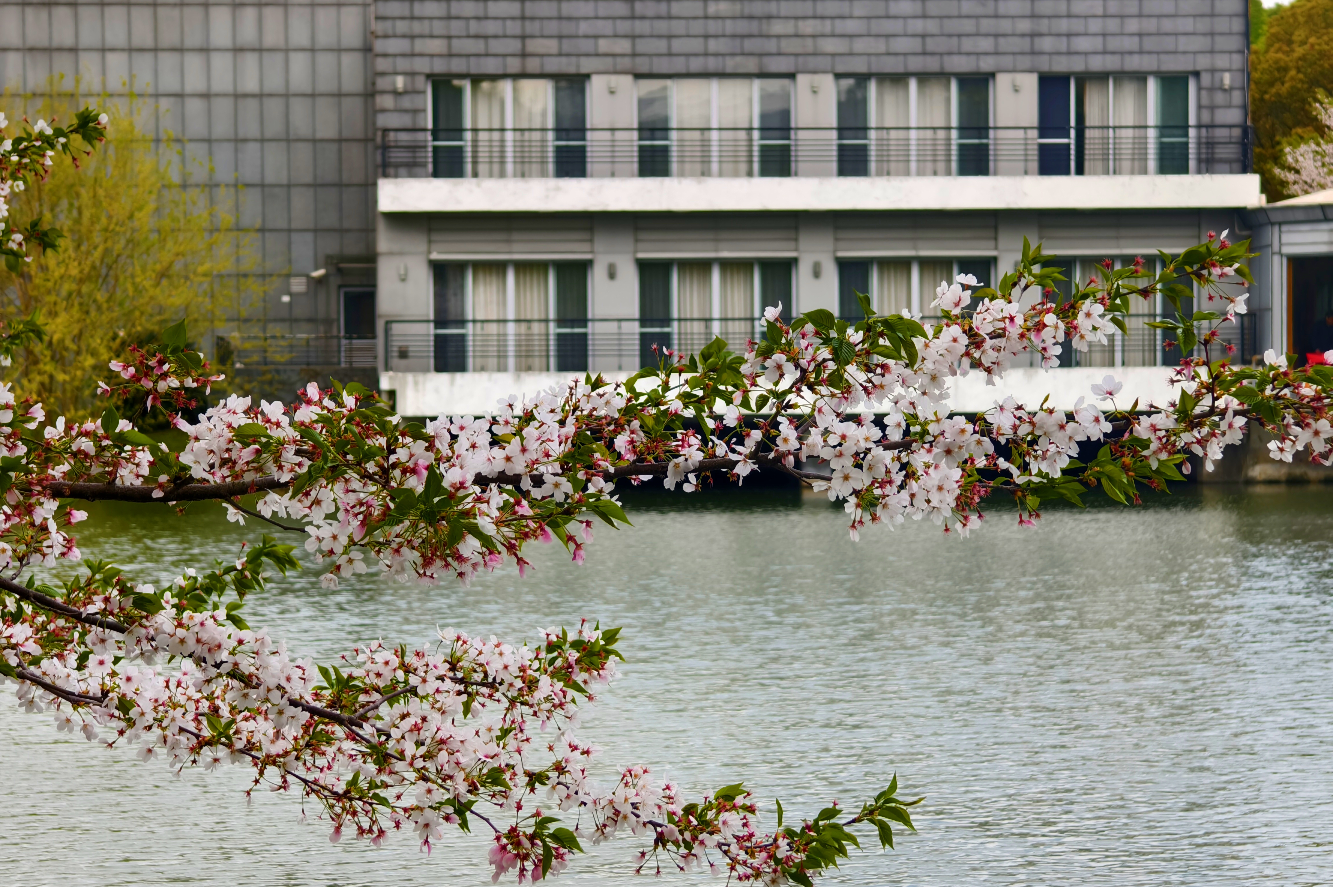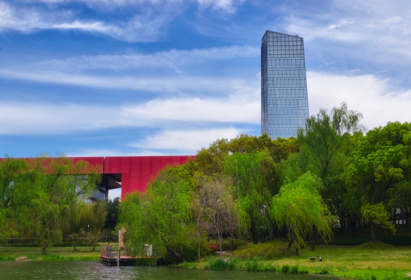 新柳依依,倒映清波,一派江南水韵。