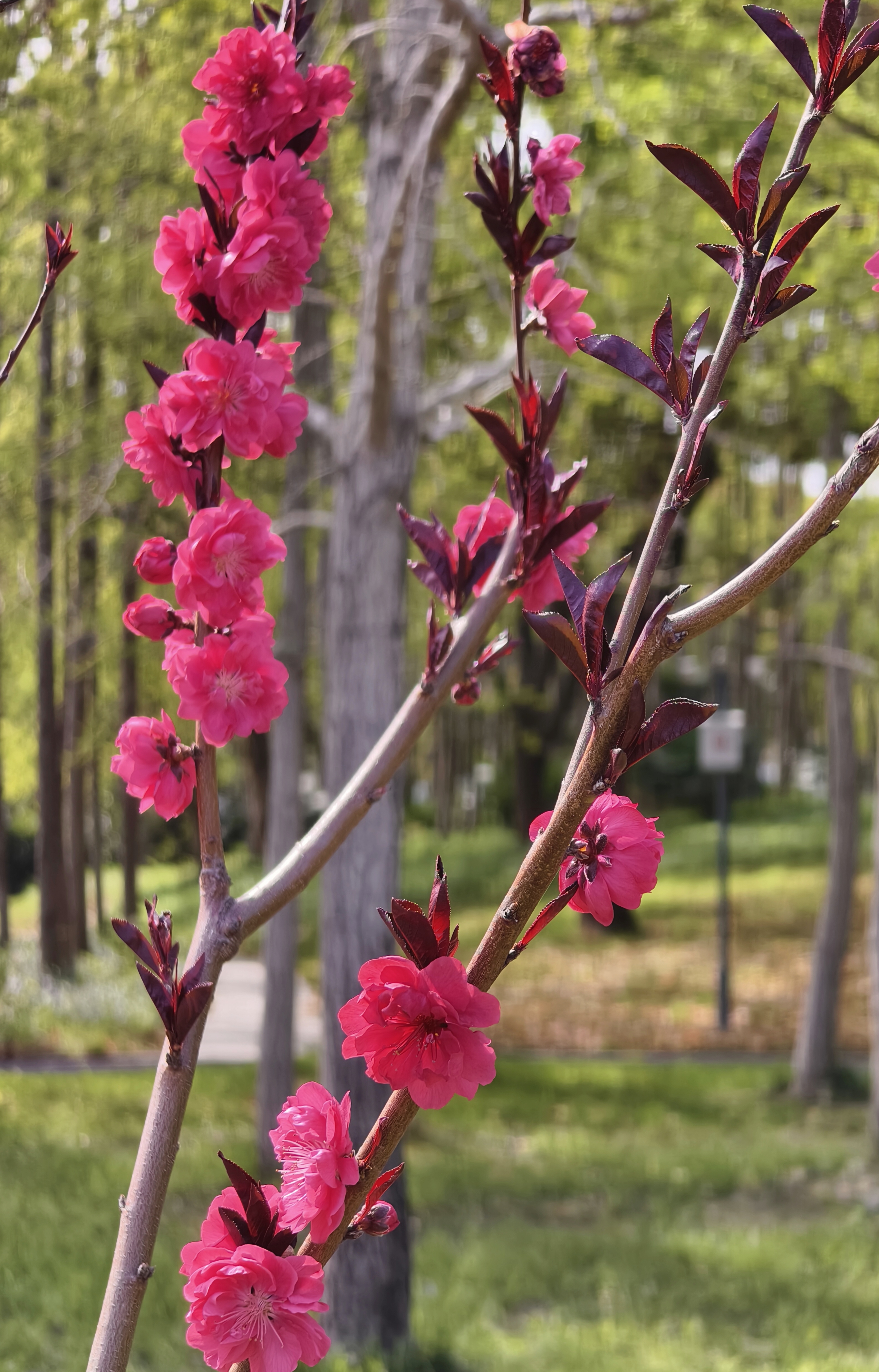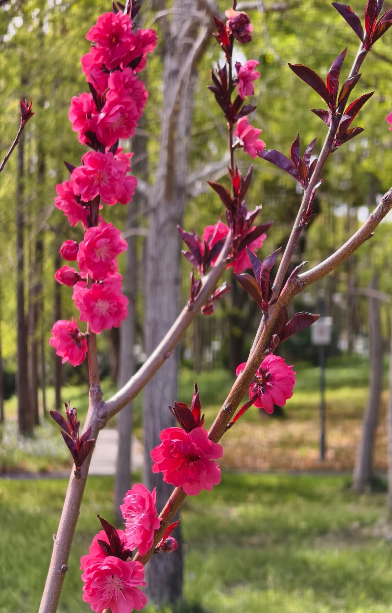 碧桃开放,灼灼其华,点染明媚春色。