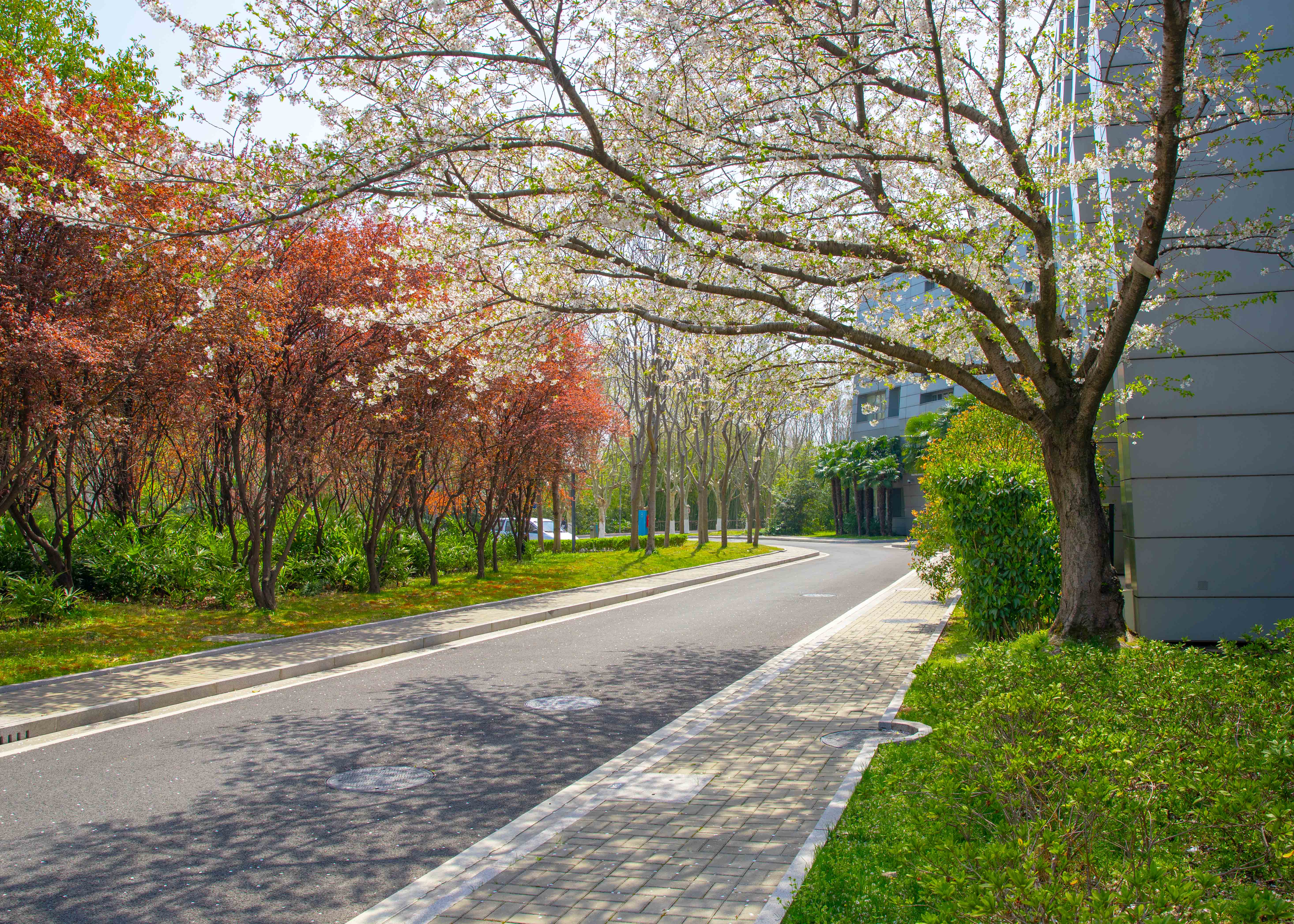 樱花如云似霞,缀满枝头,轻风轻拂,落英缤纷,铺就一路诗意。