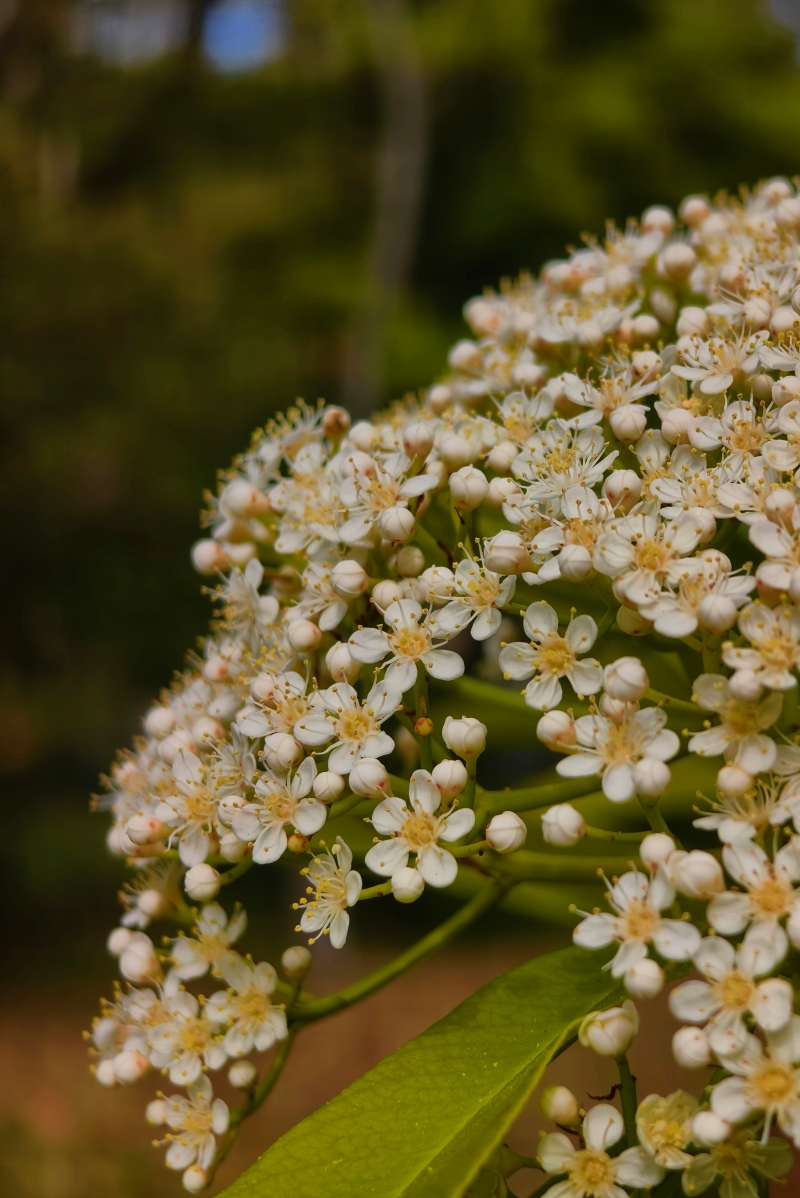 石楠素英团簇,添几分霜雪气质。